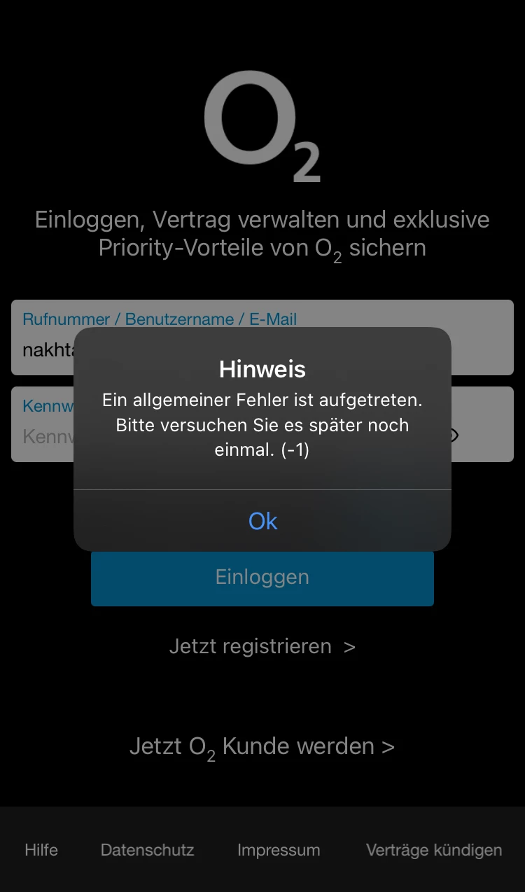 You cannot login via Mein o2 App ?