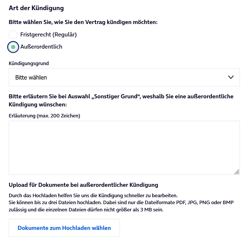 Thank you for sending us everything we need. As we only received the necessary documents a few days ago, your extraordinary termination has not yet been finalized. As soon as the relevant team has done so, you will of course receive feedback.