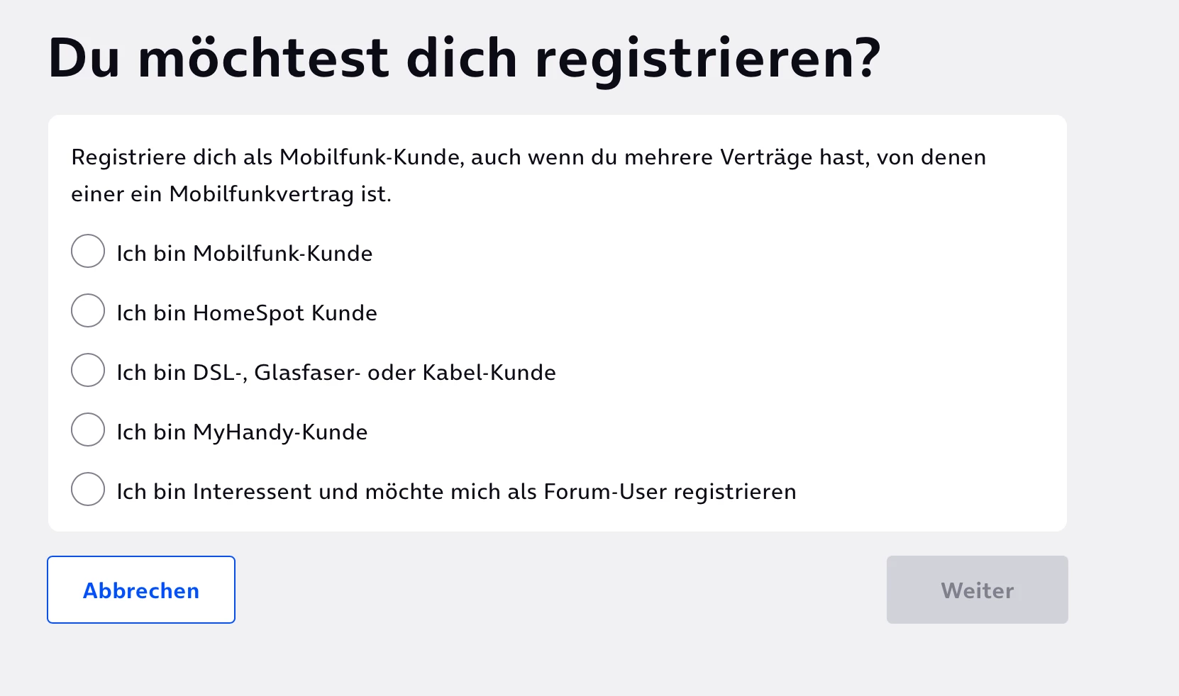3. I choose Ich bin Mobilfunk-funke and click Weiter