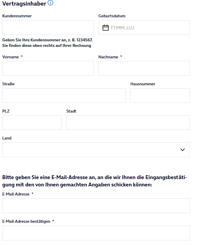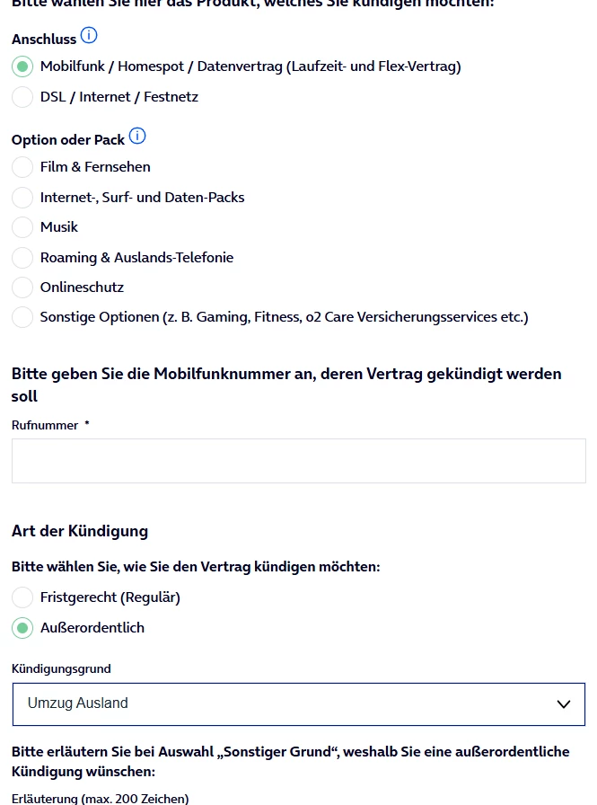 You can go via our website for cancellations, then choose “Postpaid-/Festnetz-Vertrag”, fill in your data and your Kundennummer/customer number, which you find as reference on your bills:
