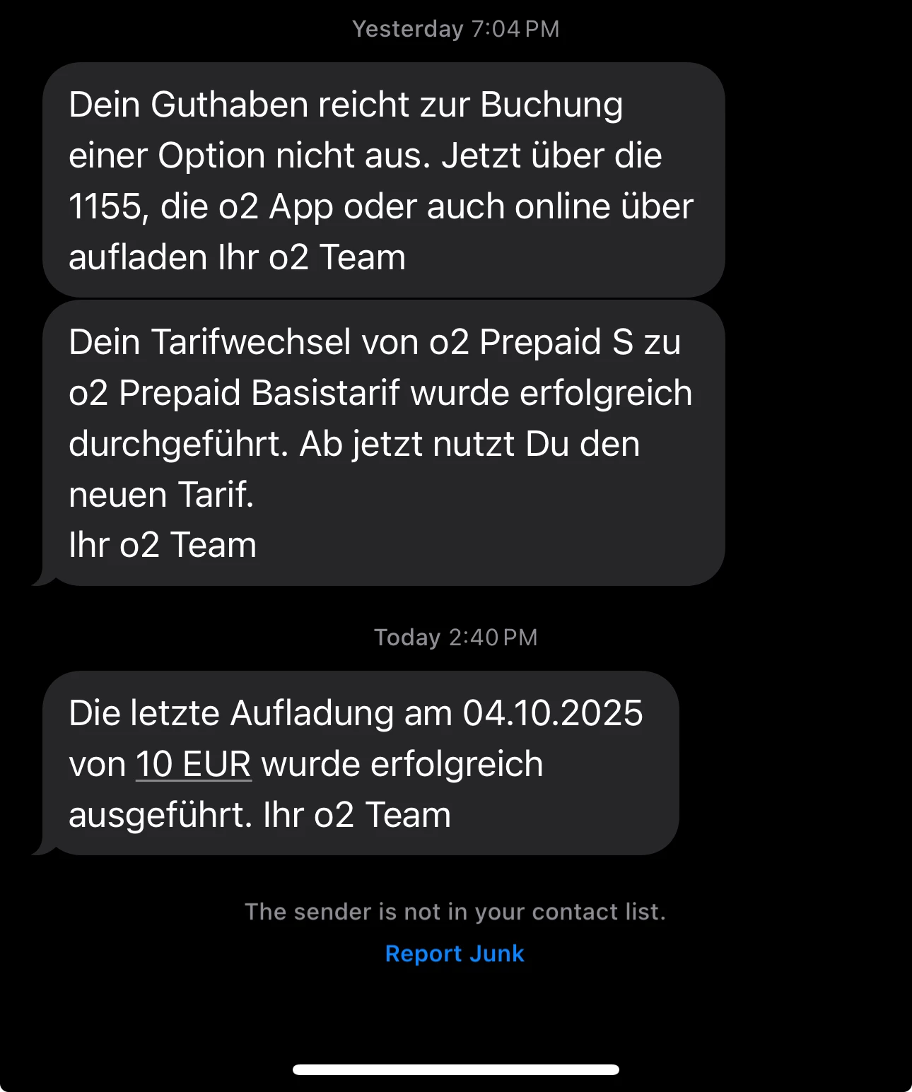 The easiest way would be to login into the Mein O₂ App and click on “Verbrauch & Kosten” → “Guthaben & Aufladungen” → “Details anzeigen”. There you should have an overview about all charges that have been made, wether it’s an SMS, data or calls. This should give us a hint on where to have a look. 😊