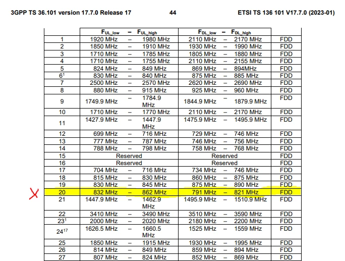 LTE band 20