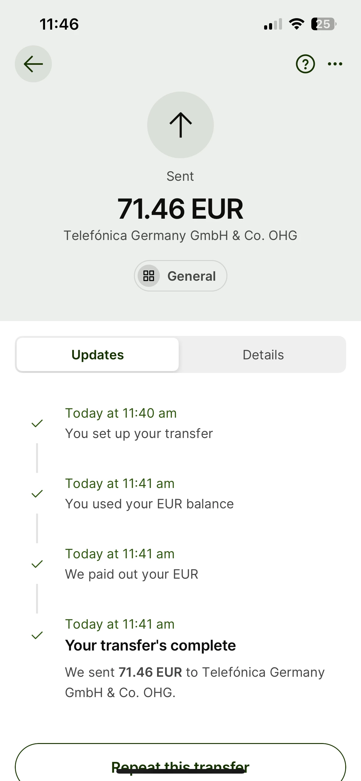 A normal transfer should be posted to your customer account in two to three days.