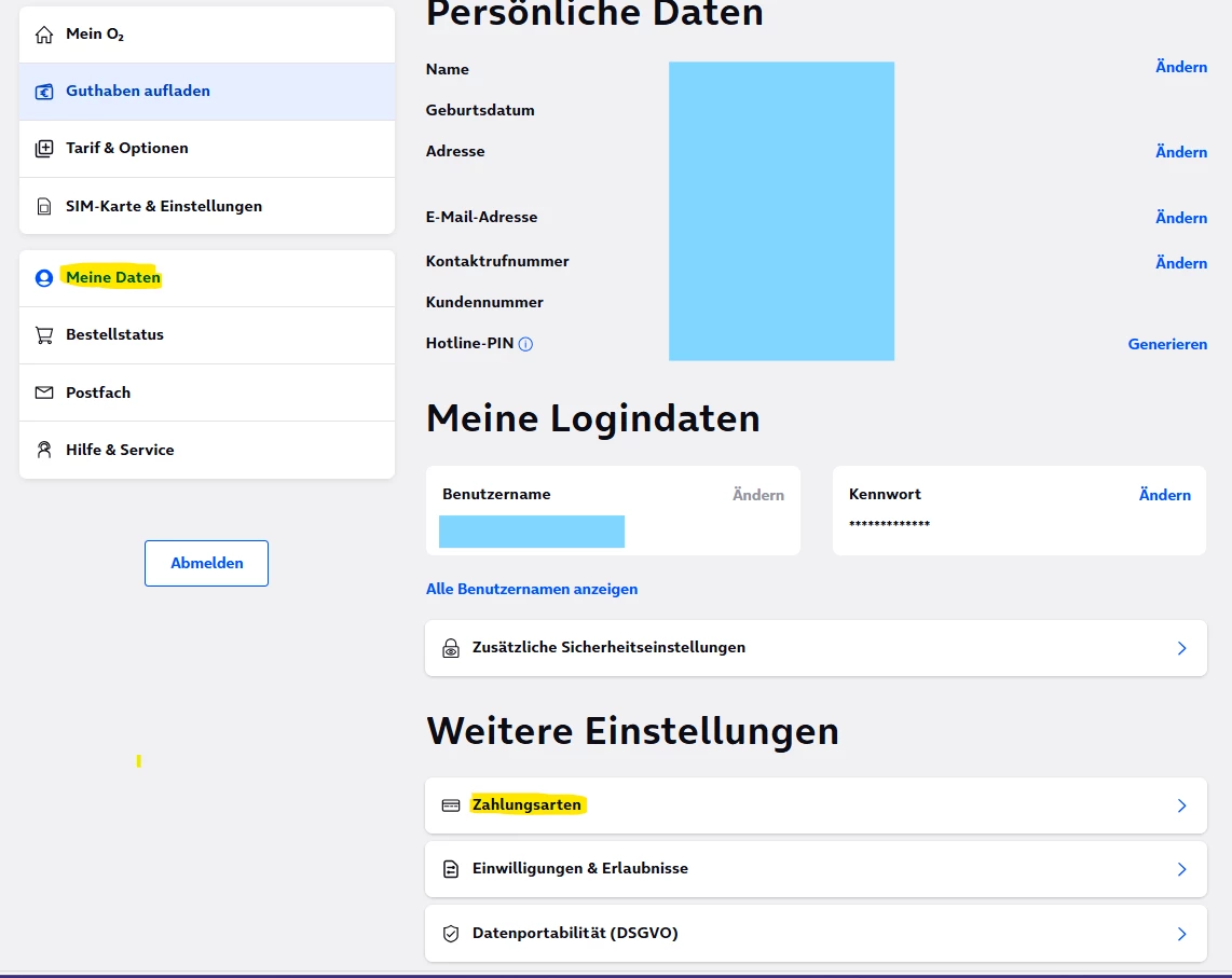 You said that you had no option to stop the direct debit in Mein o2. Which category in Mein o2 did you check for that? Did you check your personal data in Mein o2?