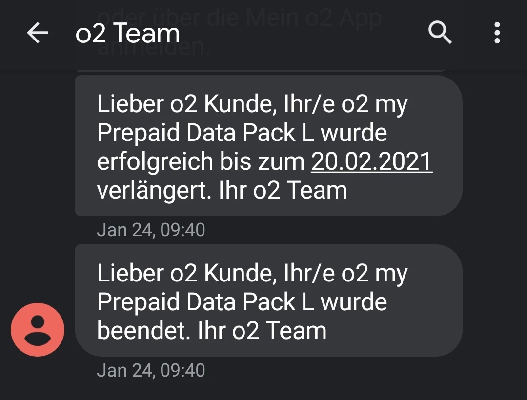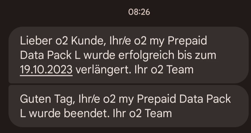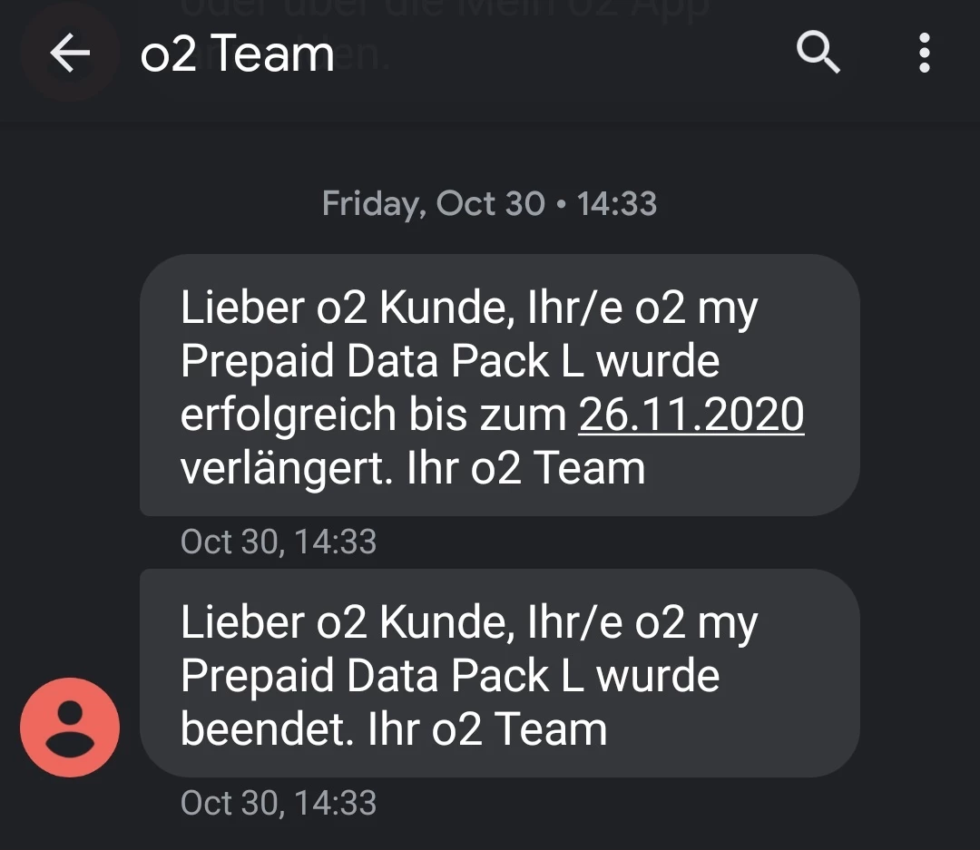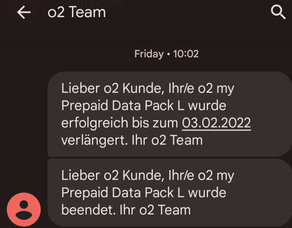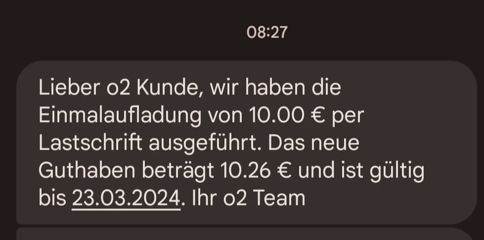 on your prepaid number stored here, I see a top-up of 20 euros, from which 0.99 euros were deducted for the surf dayflat used. The o2 my Prepaid L Pack was deactivated before the top-up. Your credit is still available. If you want a payout, you can request it via the payout form, but then the SIM card will be deactivated. There is no other way.