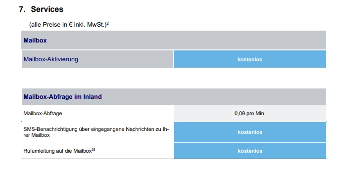 The query of mailbox messages costs 9 cents / minute and is not covered by a flat rate