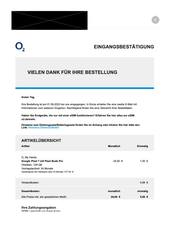24 Euro monatlich für 24 Monate für ein Pixel 7 mit Pixel Buds Pro.