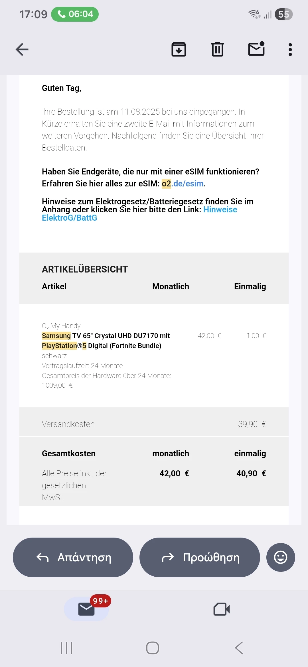Ich hatte einen Samsung-Fernseher bestellt und die PlayStation 5 war gratis dazu. Die Bestellung wurde aufgegeben am 11.08.2025 .  Die hatten geschickt bis heute nur das Fernsehen.