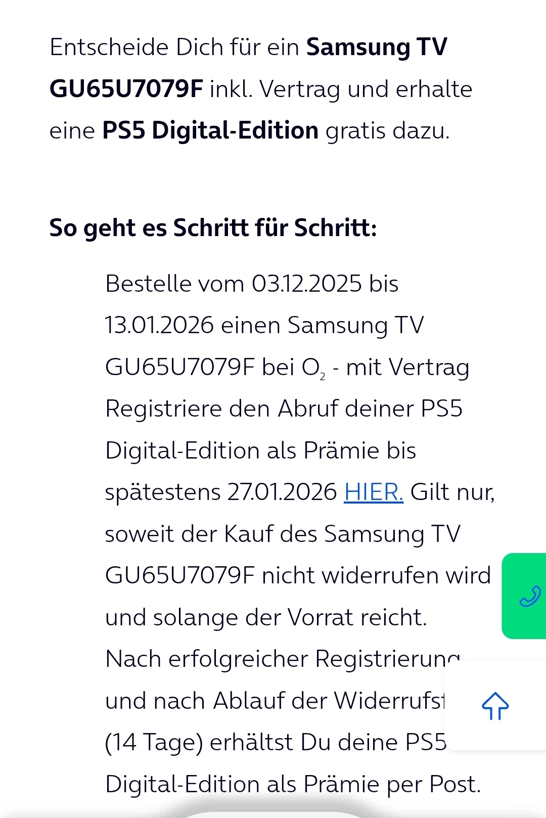 Playstation 5 bei Bestellung von Samsung Tv und O2 Unlimited max Vertrag nicht erhalten?
