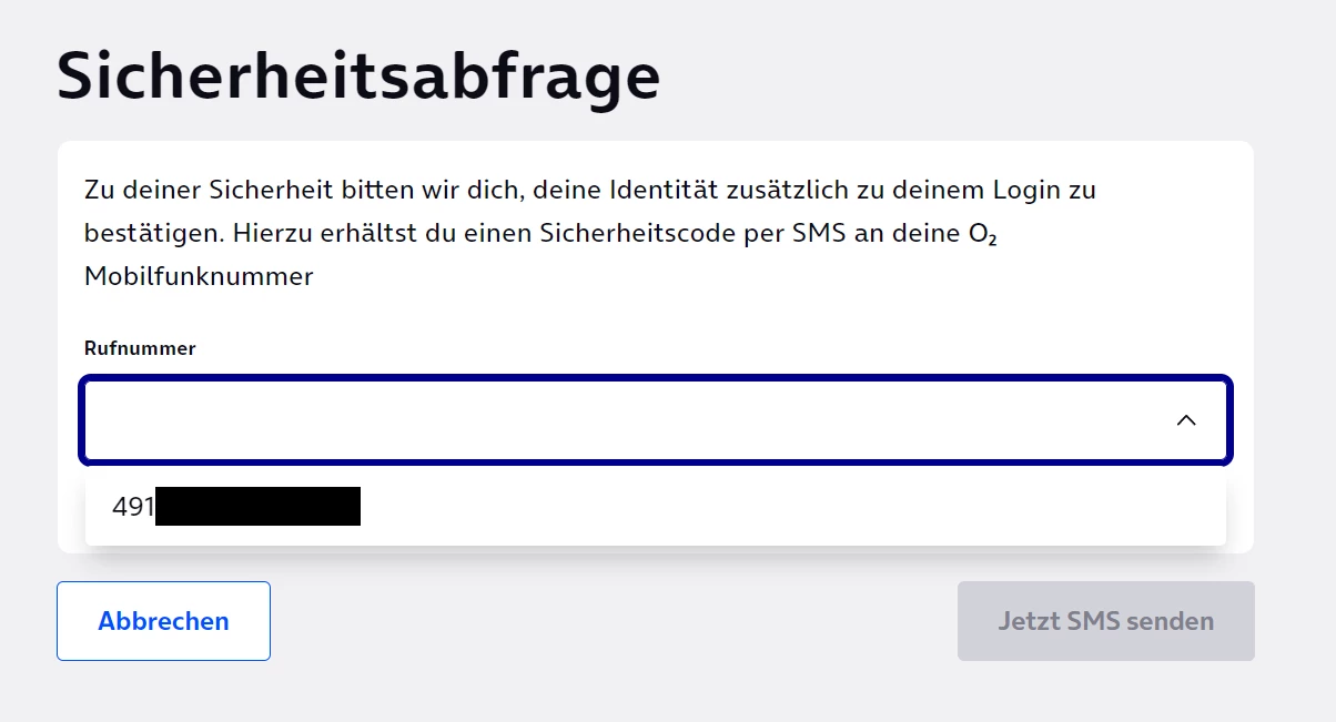 2FA für Login in meinO2 geht nur über Rufnummer (SMS). Das Hinzufügen meiner gewünschten eMail-Adresse wird abgelehnt.