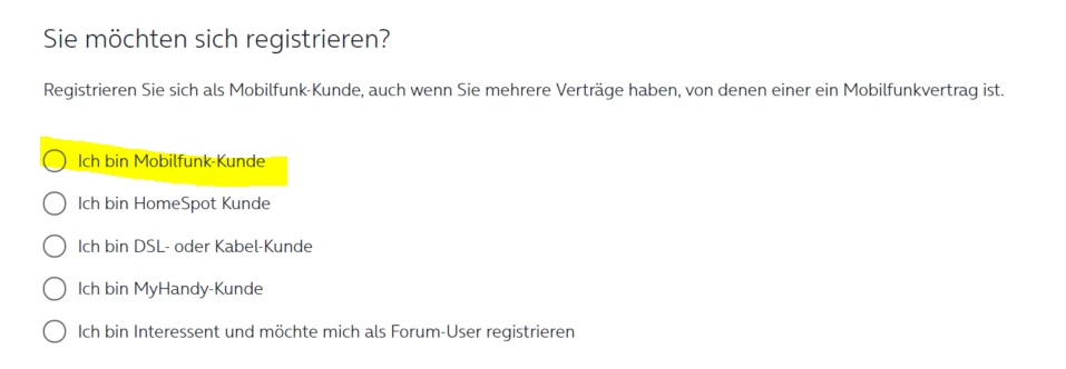 Dafür einfach auswählen, dass du Mobilfunk-Kunde bist: