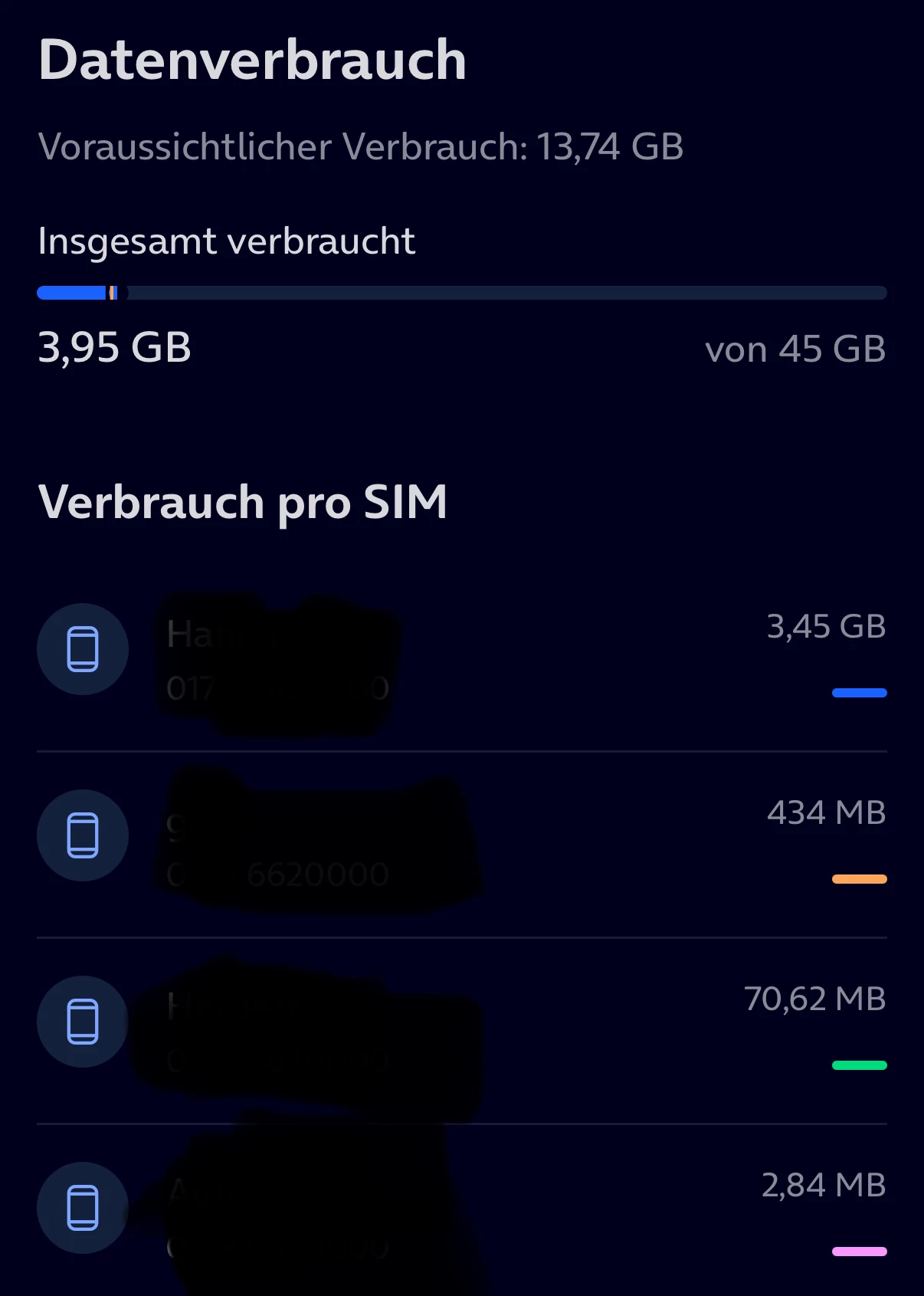 Lustig. Die App verrechnet sich immer noch beim Gesamtvolumen, kommt dem wahren Wert aber schon näher. Statt einer Differenz von 500 MB zwischen dem realen Datenvolumen und dem in der App auf der Startseite angezeigten sind es nur noch ca. 250 MB. Mal sehen, wie viele Schritte es noch benötigt, bis die App den korrekten Wert ermitteln und anzeigen kann. 😉
