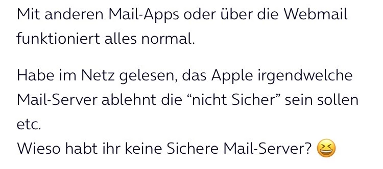Problem ist immer noch das E-Mail Server von o2 und Apple Mail App.