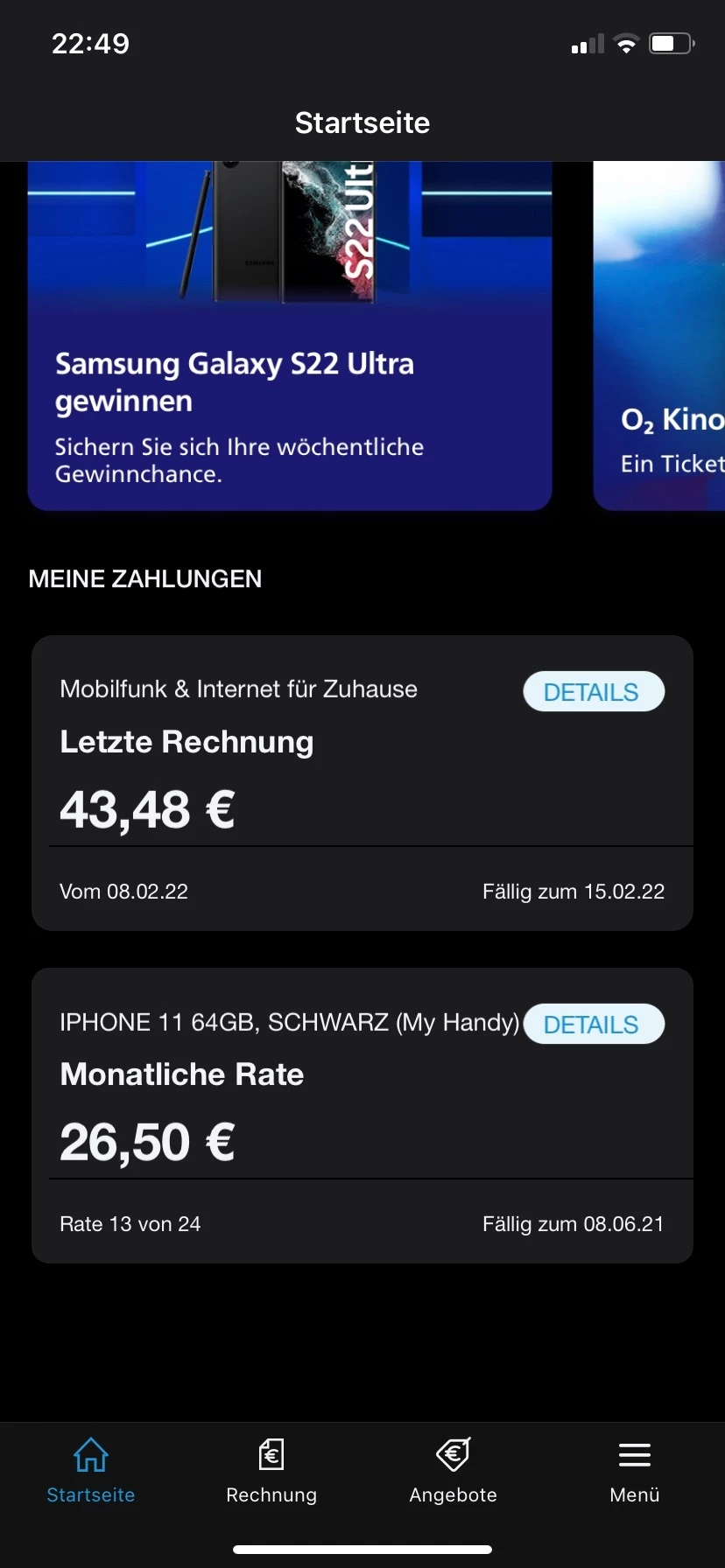 die Anzeige der Raten über unser Portal unter www.o2online.de ist korrekt. Hier sind wir bei Rate 22, fällig zum 08.03.2022.