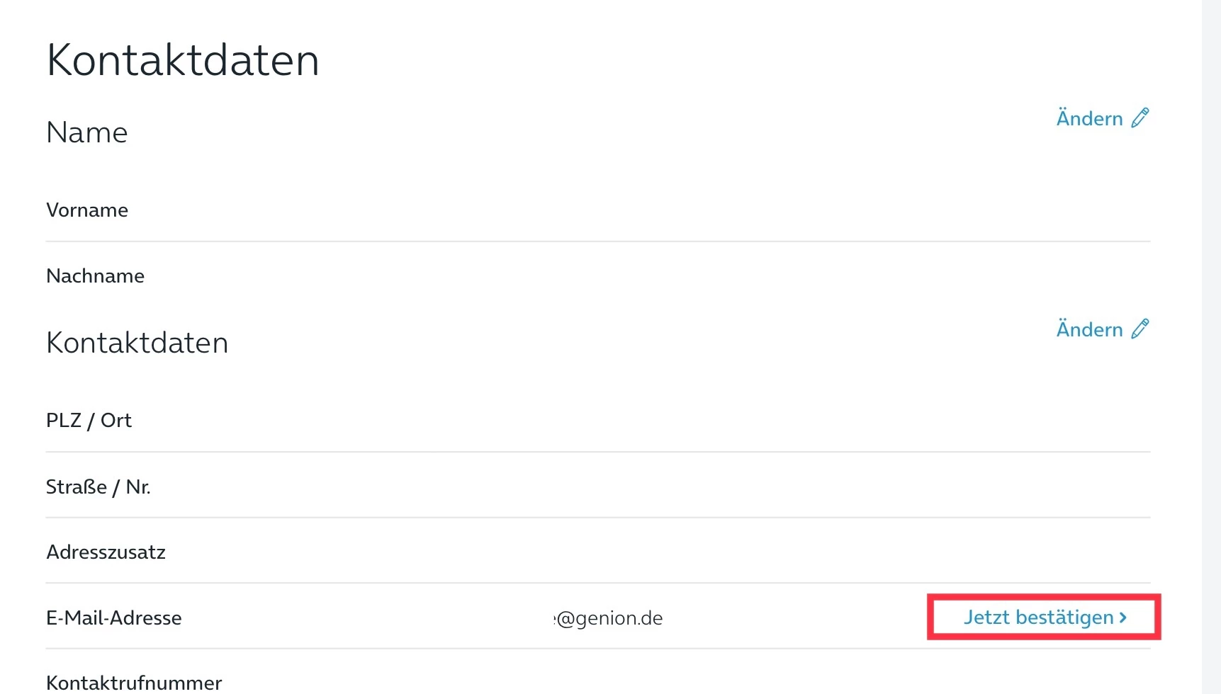 in deinen Kontaktdaten, kannst du den Linkversand erneut auslösen, in dem du neben der Emailadresse auf jetzt bestätigen klickst.