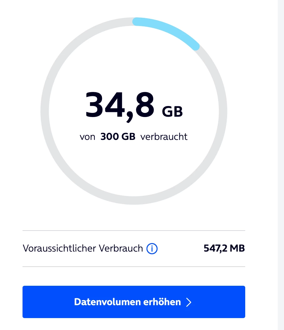 Und nein, ich habe keinen “ Unlimited” Vertrag sondern den Xl mit 300 GB Datenvolumen.