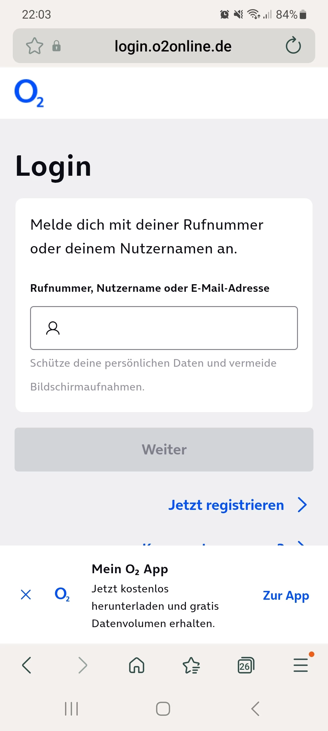 Aktuell versuchst du den Login auch nicht in der App sondern über unsere Online-Seite unter Mein o2, ist das richtig?