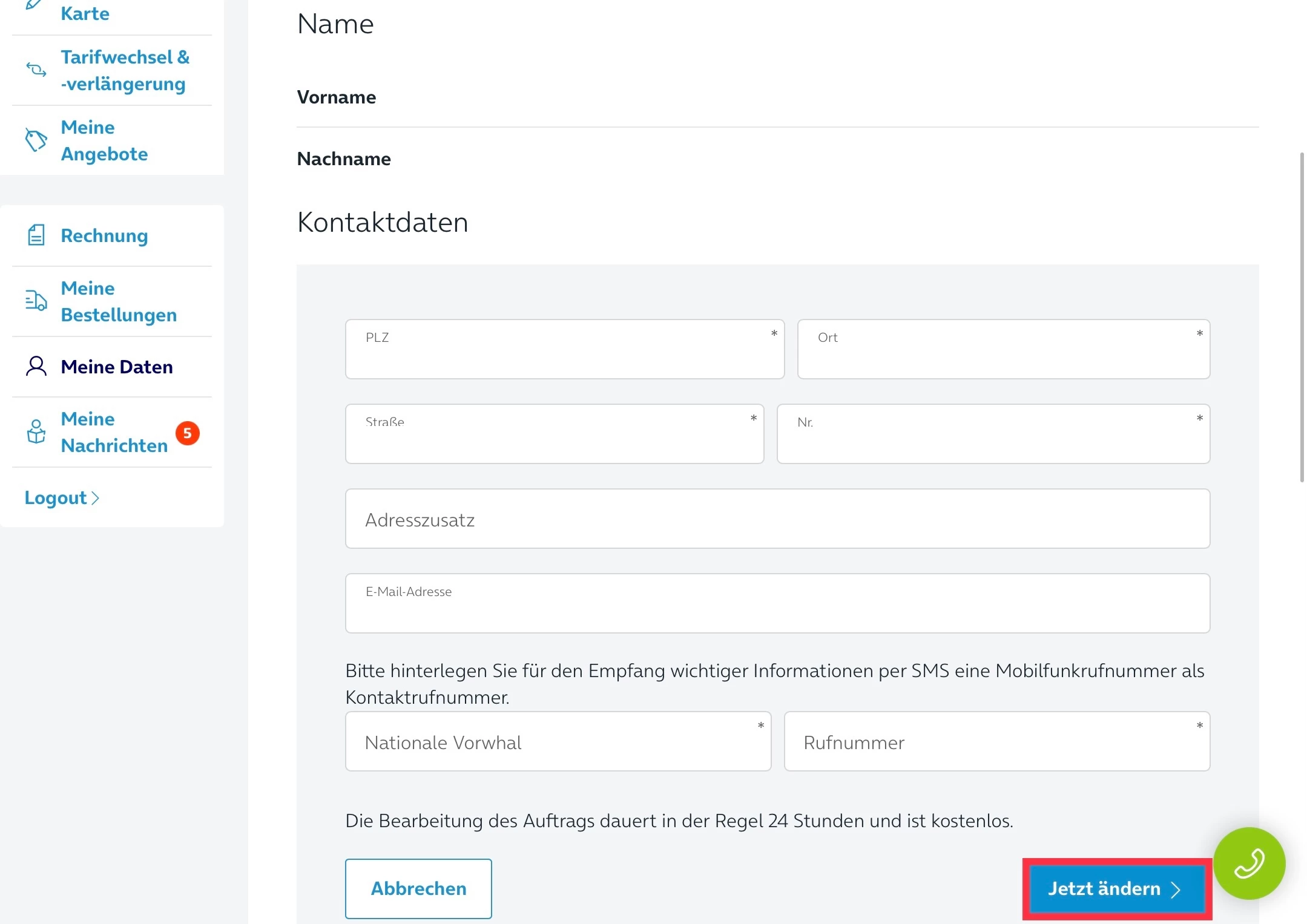 in deinen Kontaktdaten, am besten über das Online Portal.