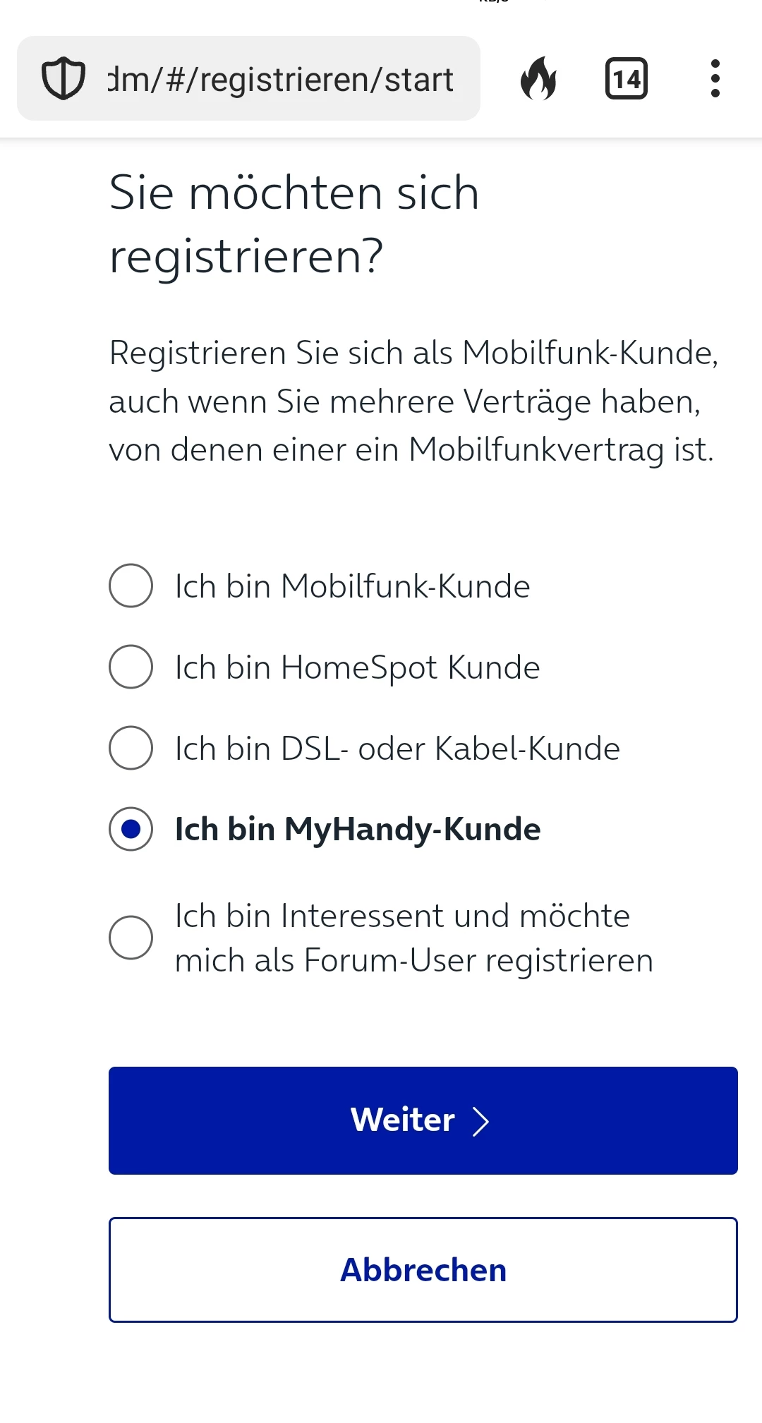 Und die Registrierung hast du als "my Handy"-Kunde mit der Vertragsnummer hierüber