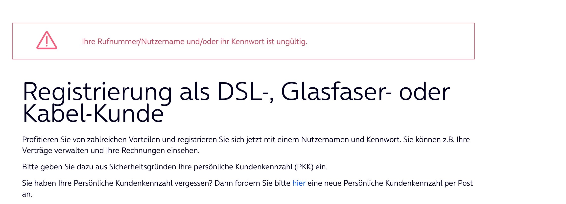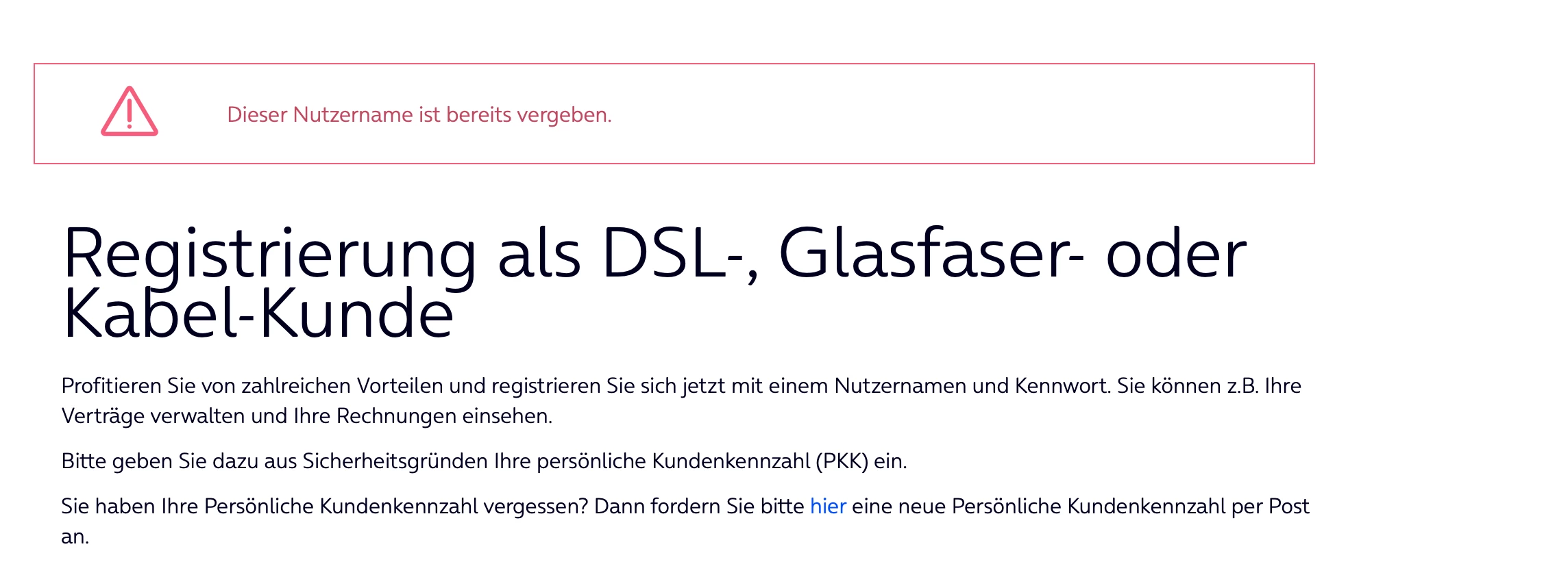 bitte probiere die Registrierung über diesen Link und nutze dafür nicht das Netzwerk vom Kabelvertrag.