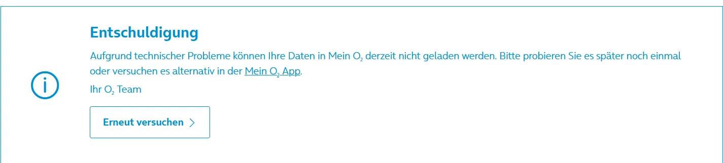 ich habe ein Handy von O2 gekauft. Ich habe ein O2-Konto, aber nur als Communitymitglied. Daher habe ich keinen Übersicht zu meinem Ratenplan. Ich habe versucht über die von O2-Mitarbeiter geteilte Links den Übersicht zu finden. Leider kriege ich immer eine Fehlermeldung (das Bild unten). Ich have auch versucht über App, klappt nicht. Könnten Sie mir bitte damit helfen?