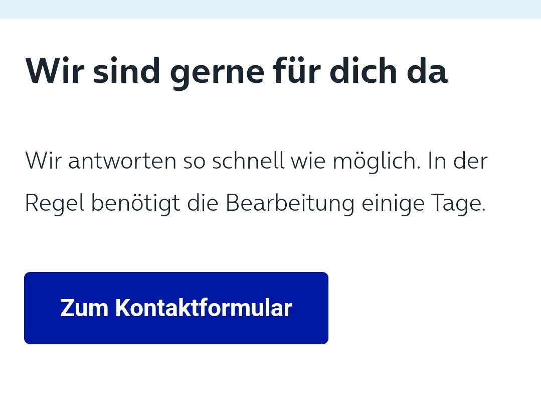Sorry, mehrmals benutze ich das Kontaktformular, auch zum Test in diesem Fall, allerdings verfehle ich eine Alternative Rechnungposition und erreiche nie ein Formular zur Nachricht erfassen oder um Personendaten einzutragen, wie dies @Sächsin (Vielen Dank!) in ihrer beispielhaften Prozedur wie vor zeigt, sondern stoße jedes Mal auf eine Infoseite.