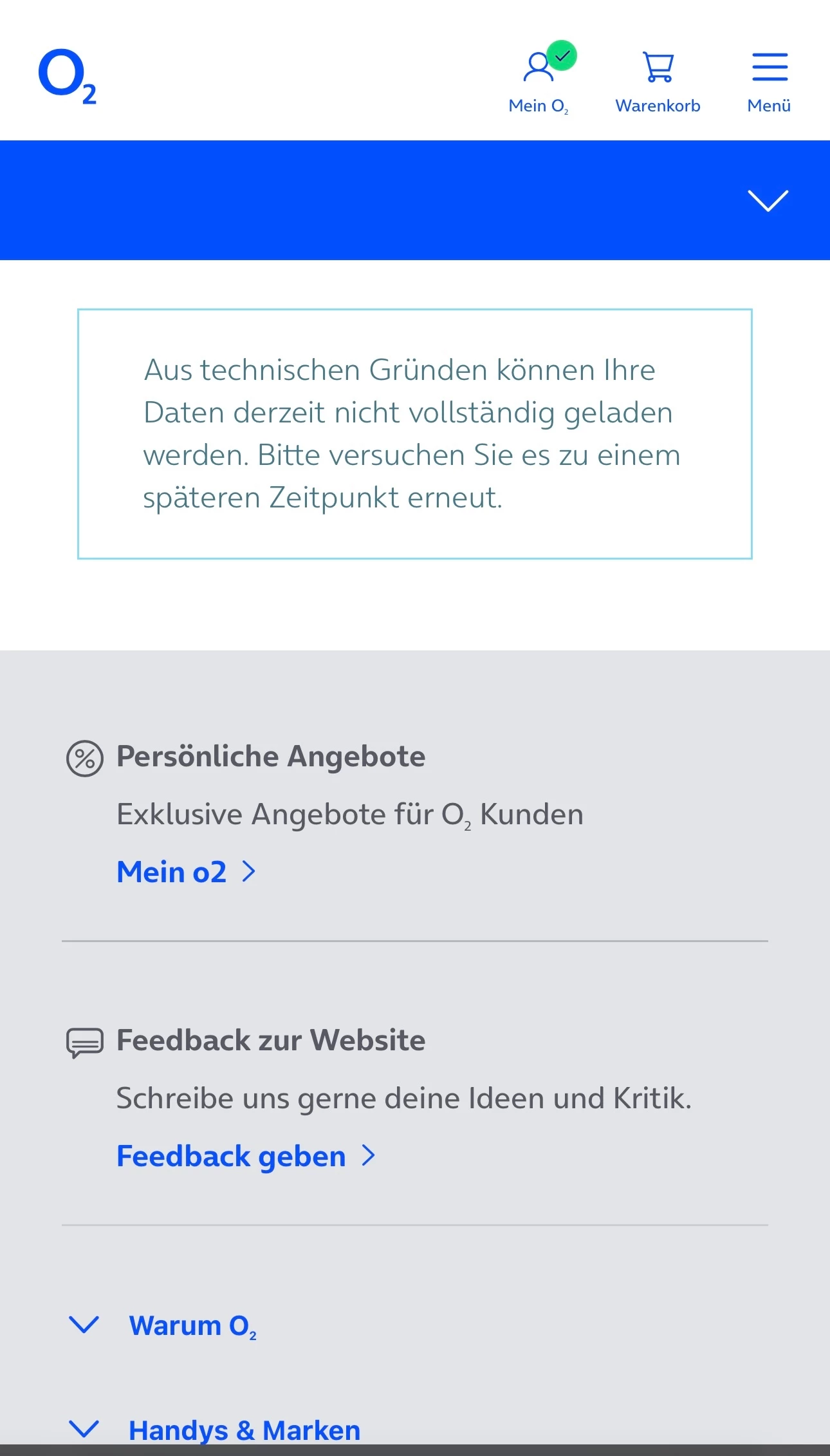 Hast du mal versucht, dein Benutzerkonto zu löschen und dich einmal ganz neu zu registrieren? Vielleicht wird dann der Fehler behoben. Wenn du dich angemeldet hast, kannst du oben rechts auf das Männchen klicken und erstmal auf „Meine o2 Startseite“ drücken. Danach drückst du wieder auf das Männchen und dann auf „Login verwalten“. Dort kannst du dein Benutzerkonto löschen.