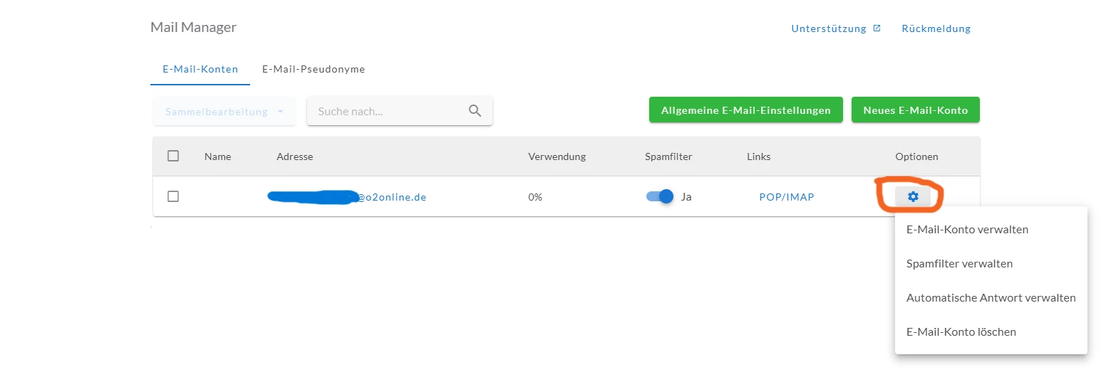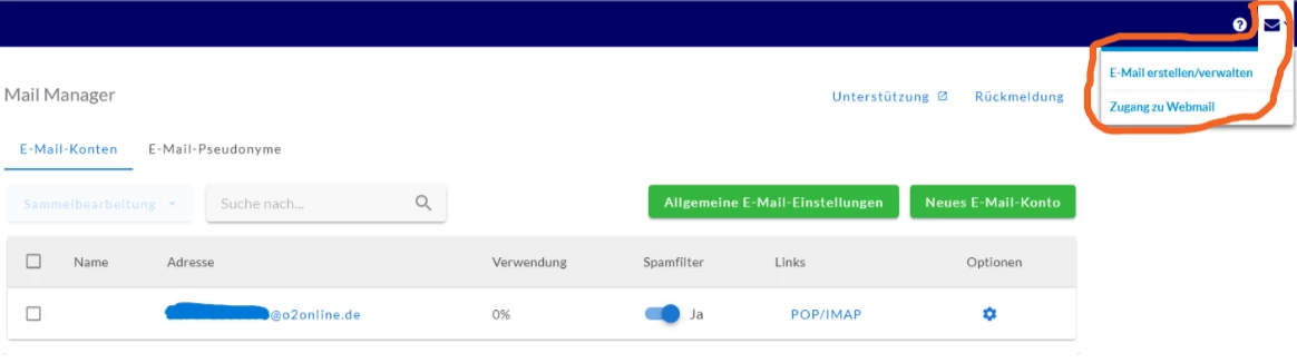 Zuerst hier oben rechts auf E-Mail erstellen/verwalten klicken