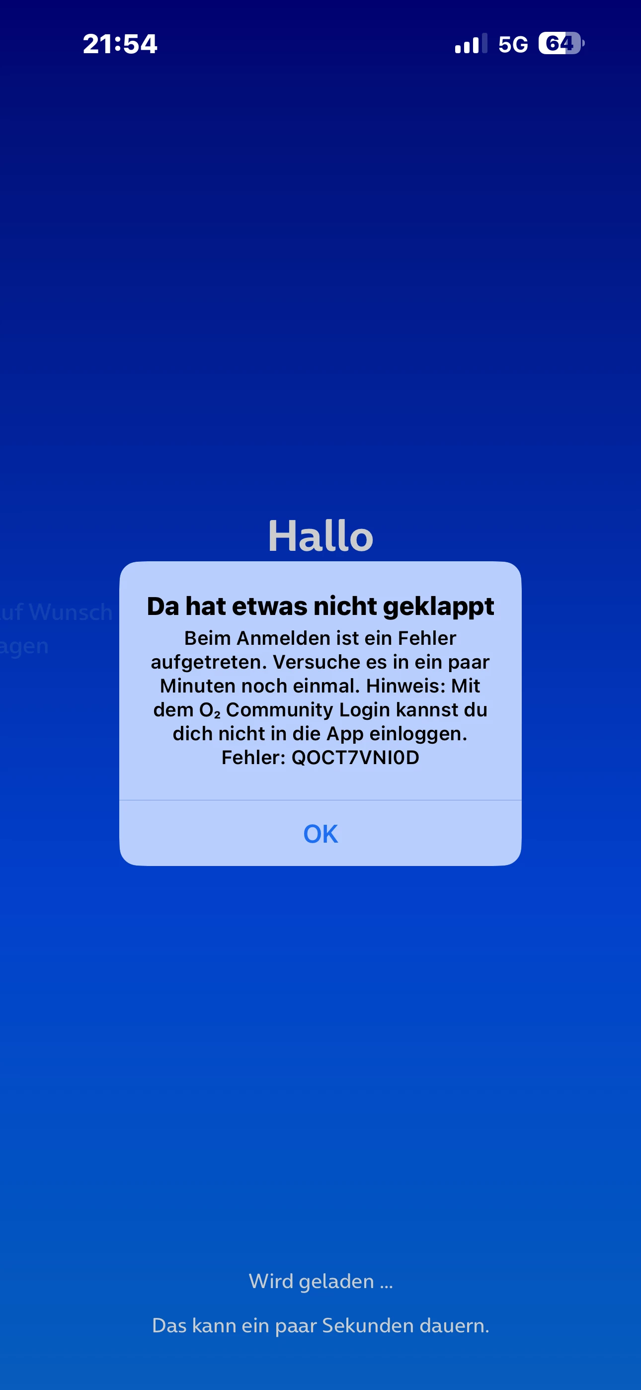 Hast du die Mein o2 APP schonmal deinstalliert und neu installiert ?