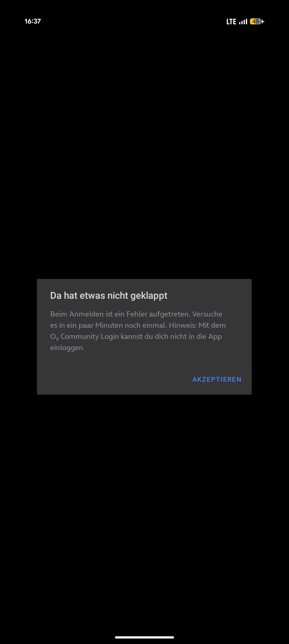 Aktuell ist die o2 App generell gestört. Ein Login funktioniert nicht, und falls man noch drin ist, lautet der Standardspruch, *Da hat etwas nicht geklappt*. 🤷‍♂️