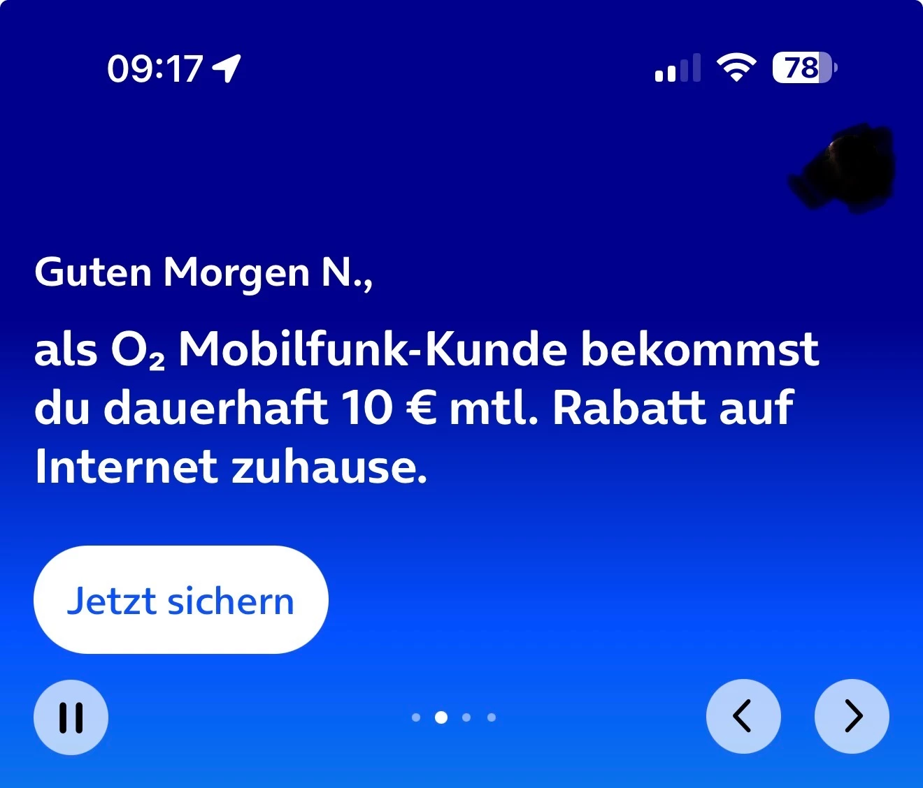Ein o2 Mitarbeiter kam auf die glorreiche Idee, meinen kompletten „Mein o2“-Zugang löschen und neu einrichten zu lassen mit dem Ziel, den Fehler damit zu beheben. Danach war auch mein Zugang hier für die Community gelöscht und seitdem tauche ich notgedrungen unter einem anderen Namen auf. Der alte war nicht mehr zu retten, da ich mich nicht mehr anmelden konnte. Gebracht hat mir das Ganze allerdings außer Arbeit und Ärger nichts 🥺 und auch an der Ausgangssituation mit N.N. hat sich nichts verändert.