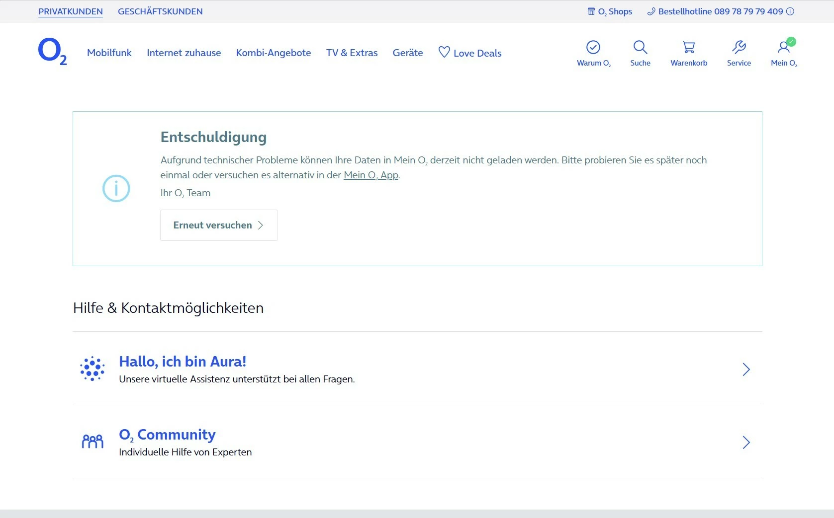 Mein O2 Bereich funktioniert nicht