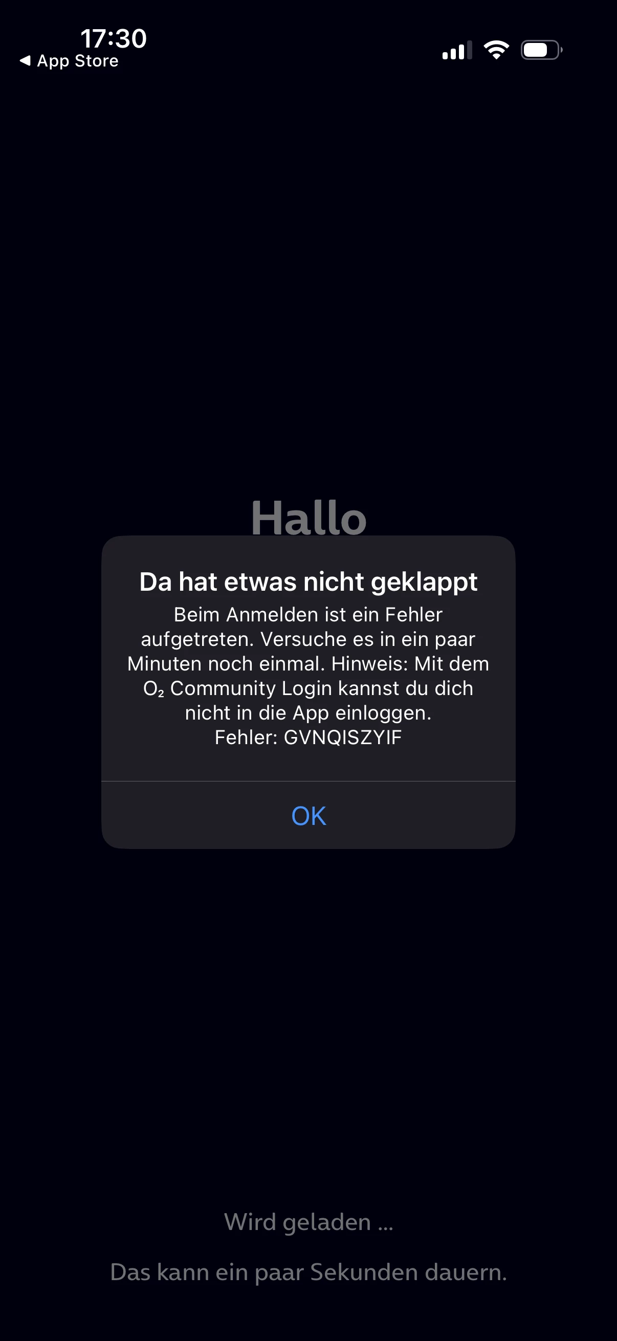 Außerdem bekomme ich beim Anmelden in der O₂ App immer den Fehlercode: GVNQISZYIF angezeigt. Der Login funktioniert dadurch gar nicht. App-Neustart, Handy-Neustart sowie der Wechsel zwischen WLAN und Mobilfunk haben leider nichts gebracht, die App ist aktuell.
