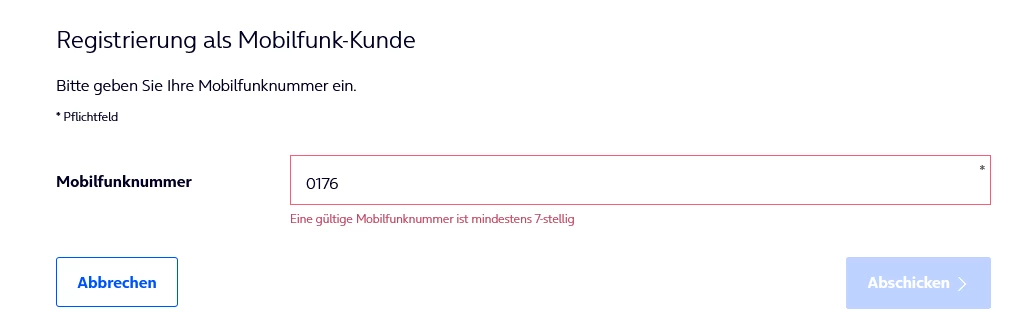 Hallo ich habe eine neue o2 Nummer und möchte mich bei mein o2 registrieren allerdings sagt er mir immer wen ich meine neue Telefonnummer eingebe Ihre Rufnummer/Nutzername und/oder ihr Kennwort ist ungültig