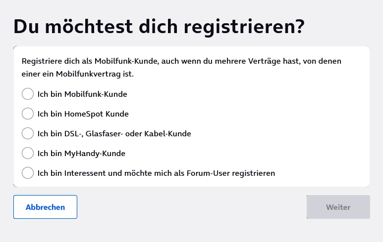 Hattest du dich denn schonmal mit deinem Vertrag registriert? Hier in der Community hast du einen Interessenten-Login ohne Verknüpfung zu einem Mein o2-Account.