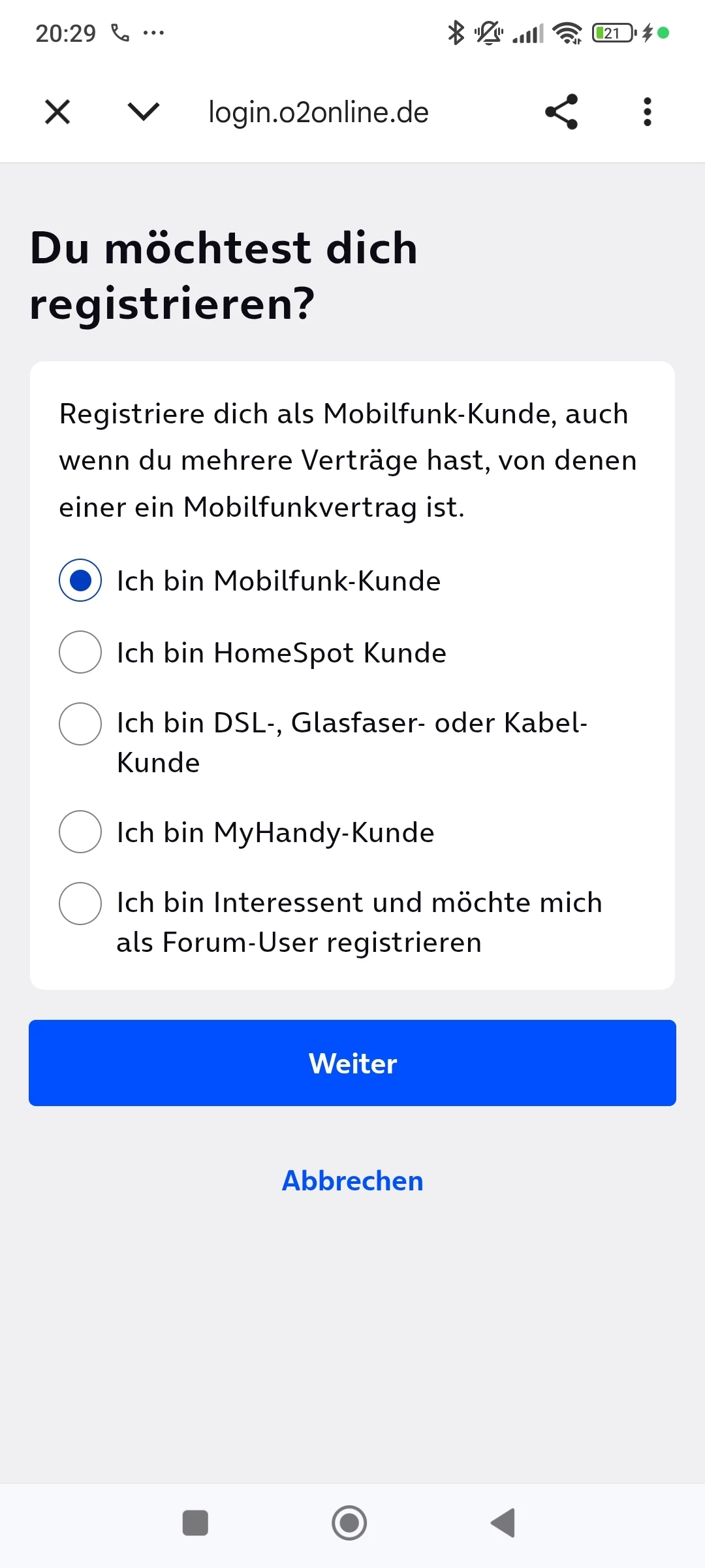 Was muss ich tun? Können Sie mir bitte sagen, was ich machen soll? Ich kann mich bei O2 (Mein O2) nicht registrieren.“