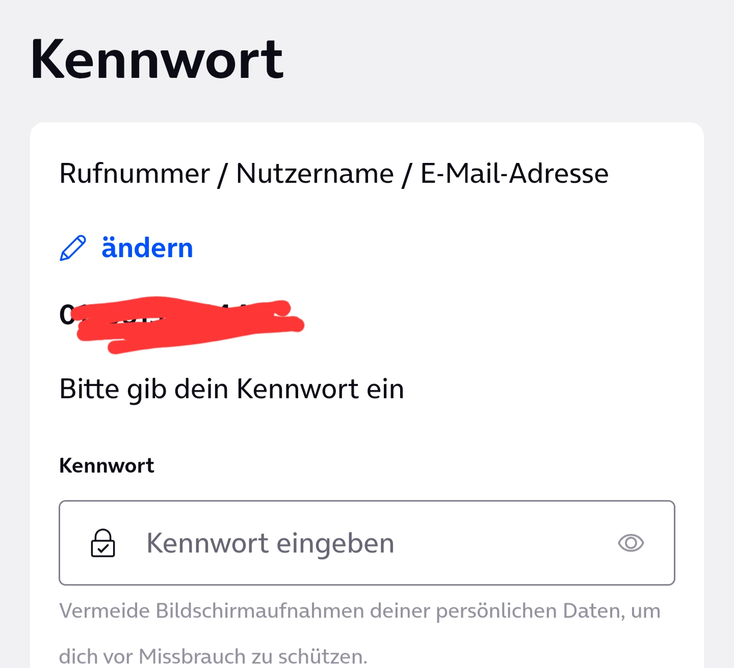 aktive simkarte haben um Kennwort zu ändern