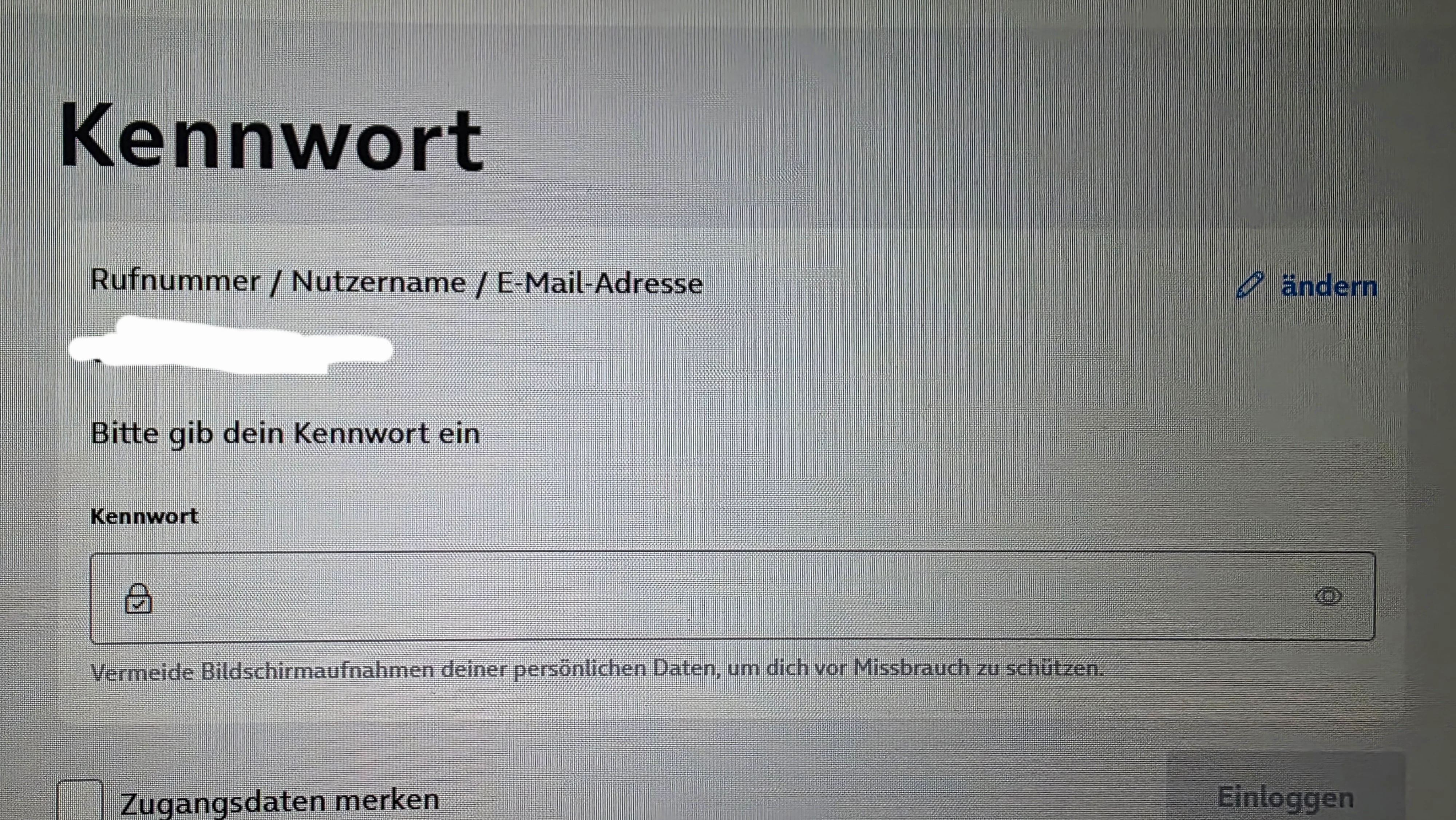 Ich gehe auf registrieren, gebe die Rufnummer ein und dann werde ich, wie oben in meinem Screenshot, nach einem passwort gefragt, ich habe aber nie eins vergeben können, weil ich mich noch nicht angemeldet habe.