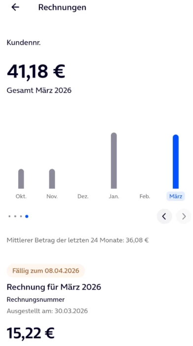 Spricht: Rechnung vom FEB. + MÄR. wird als fordernder bzw. offener Betrag angezeigt.
