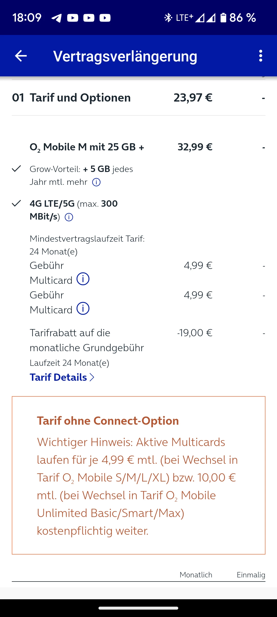 Ergänzung: Im konkreten hängt es wohl mit der Connect-Option zusammen, denn meine Wahl in der Vertragsverlängerung hat diese nicht, wodurch dann ganz am Ende dann ein höherer Grundpreis angezeigt wird. Die Connect-Option benötige ich aber nicht. Hier ein paar Screenshots meiner aktuellen Situation…ich würde gern verlängern für 13.99€ , was aber nicht möglich ist.