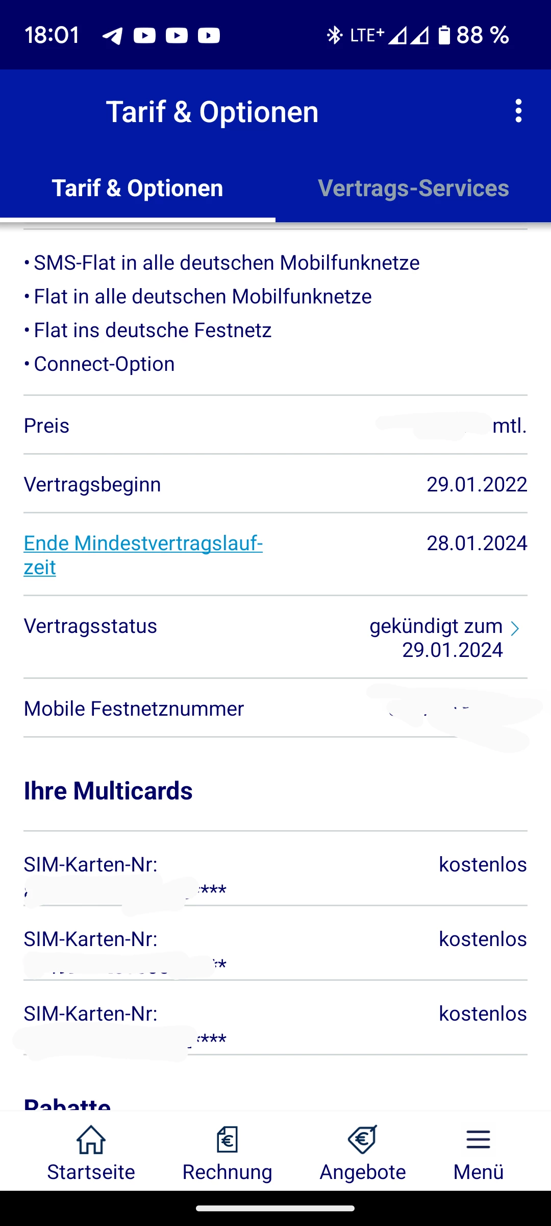 Ich habe 3 aktive SIM Karten und möchte 2 davon, welche ich nicht nutze, löschen. Der Hintergrund ist, dass eine Vertragsverlängerung mit den 3 Karten einen höheren Grundpreis zufolge hätte. (pro Karte glaube 5€?)