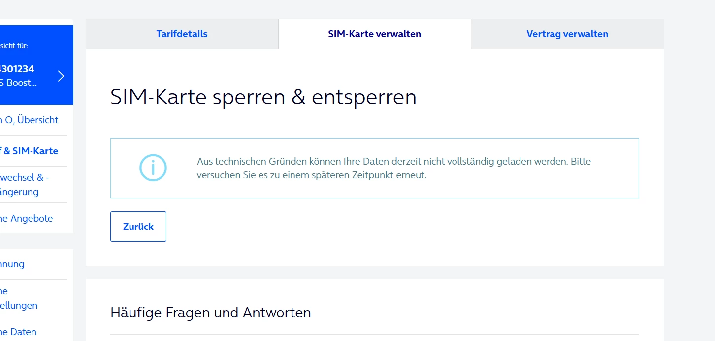 aktuell kann ich keine SIM-Karten-Sperre durchführen. kann bitte O2 dies für mich durchführen. danke