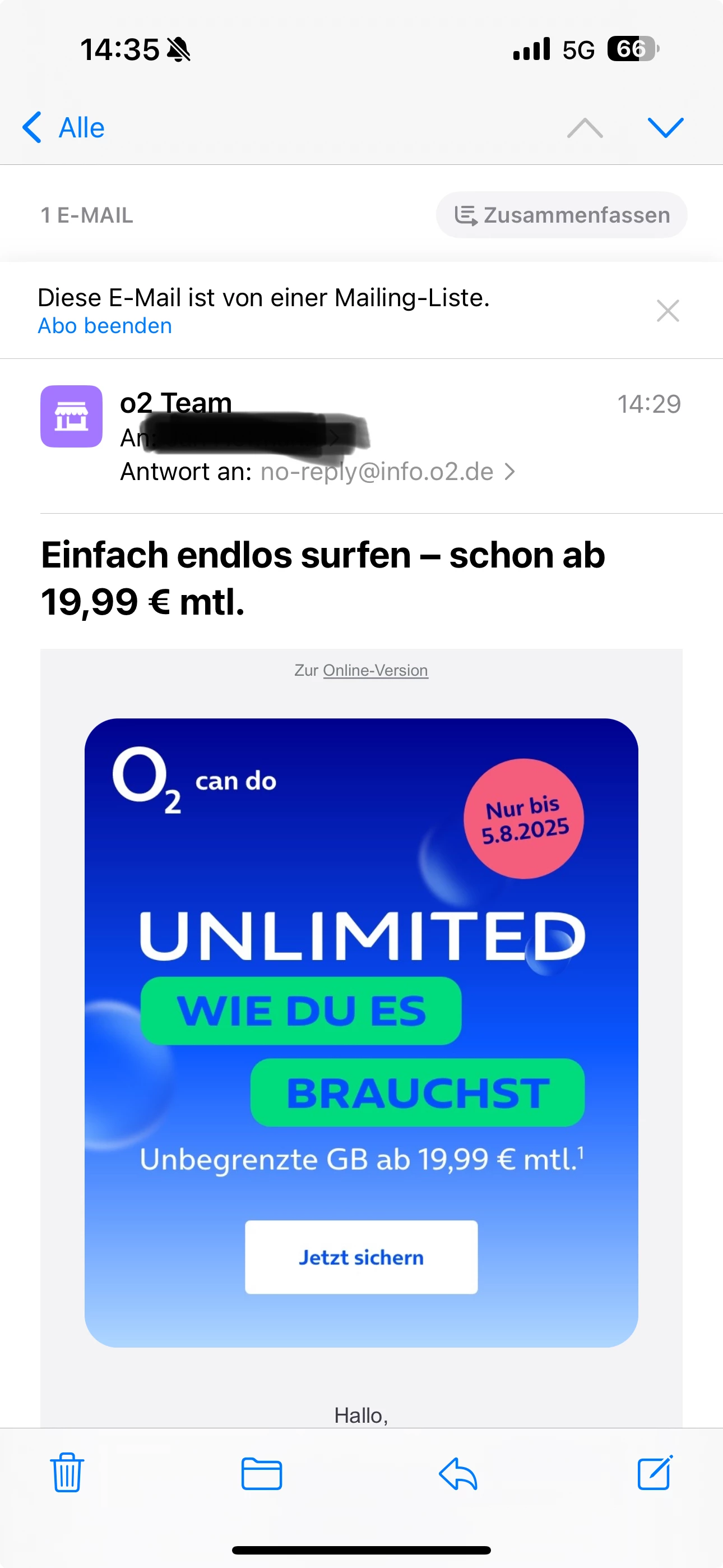 Täglich gleiche Werbemail von no-reply@info.o2.de - Newsletter abbestellen hilft nicht