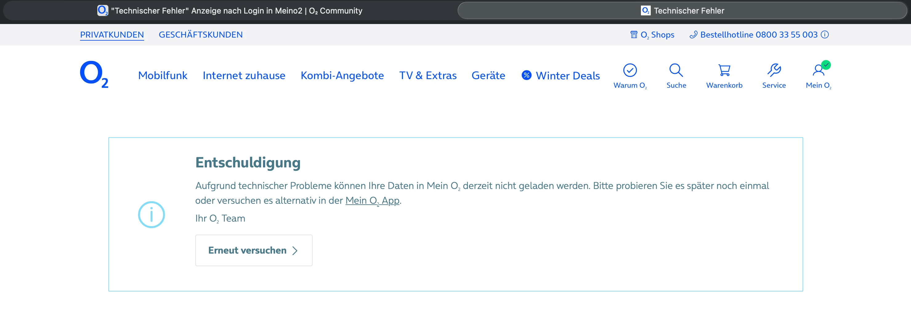 o2 hat es geschafft, ich kann wieder auf meine Daten im Onlineportal zugreifen 🥳