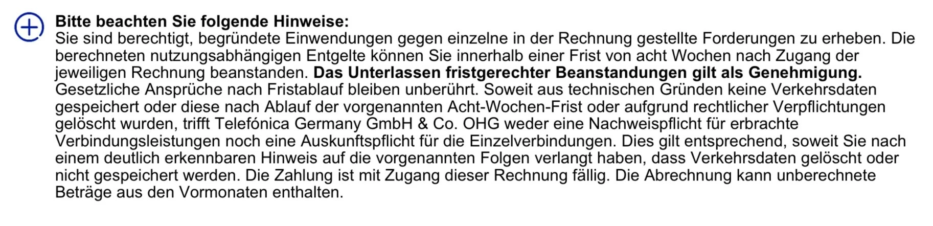 Rechnungen sollten, wie vorgesehen, innerhalb von 8 Wochen reklamiert werden.