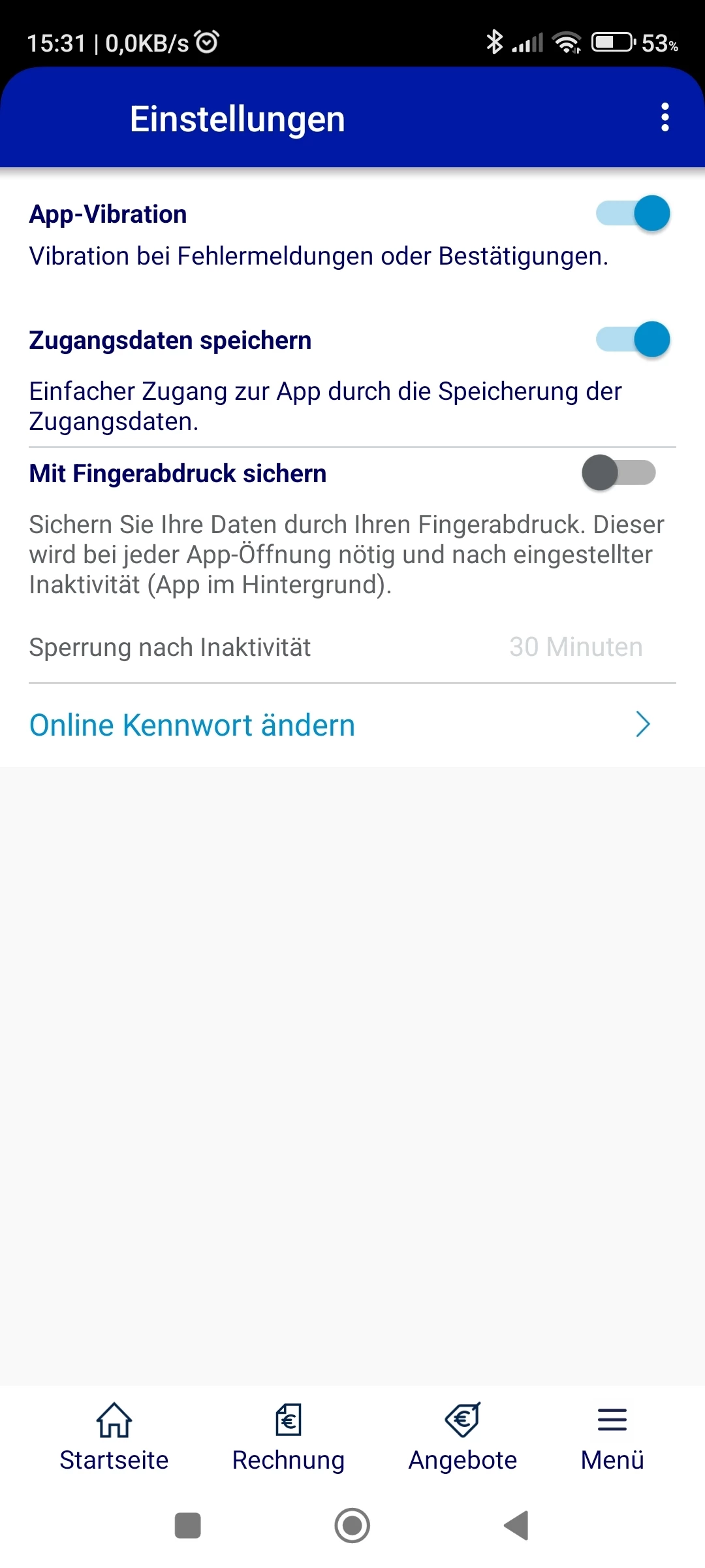 Das Login Passwort läßt sich nicht speichern in der Appversion. Das Feld ist leer. Das Passwort wird reinkopiert, wenn man den Fingerprint aktiviert. Ist nach wie vor so. Habe ich gerade nochmals geprüft. Paßwortfeld wird immer wieder geleert.