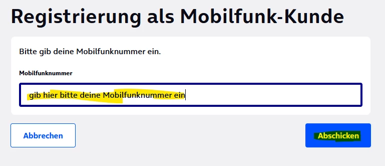 Denn ich vermute, dass deine Mobilfunknummer noch nicht registriert ist.