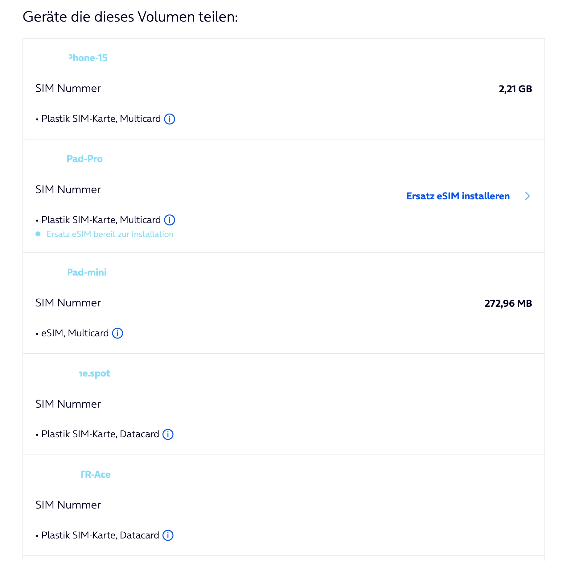 Jetzt sehe ich, unter dem Menupünkt “Tarif & SIM-Karte” - Reiter “SIM-Karte verwalten”, nicht mal mehr die Option “eSIM Detail einsehen”… Es ist einfach verschwunden!