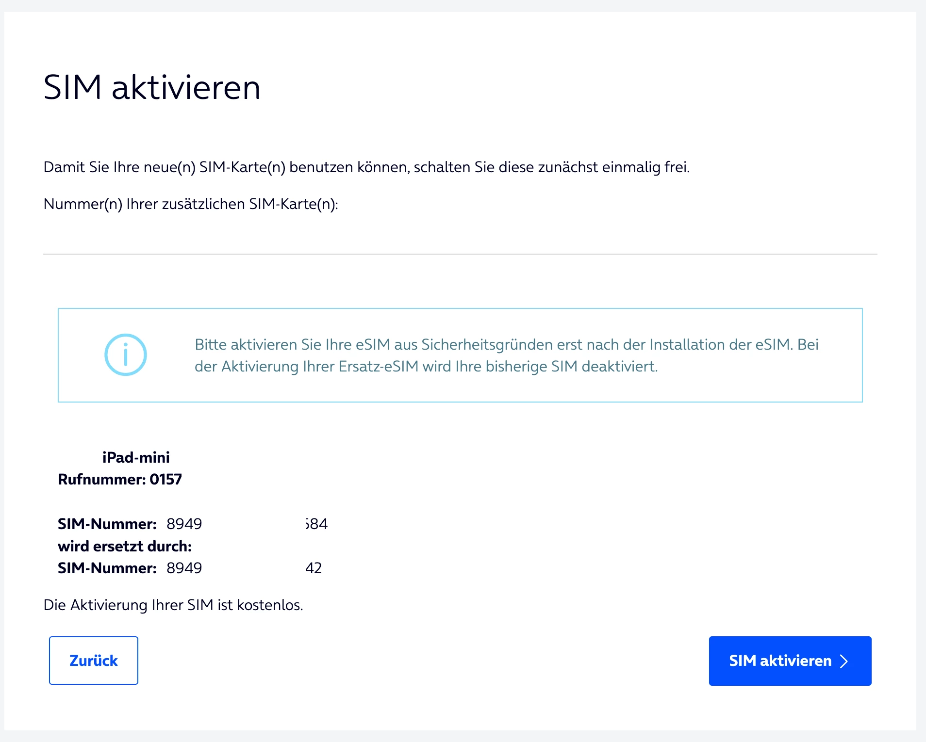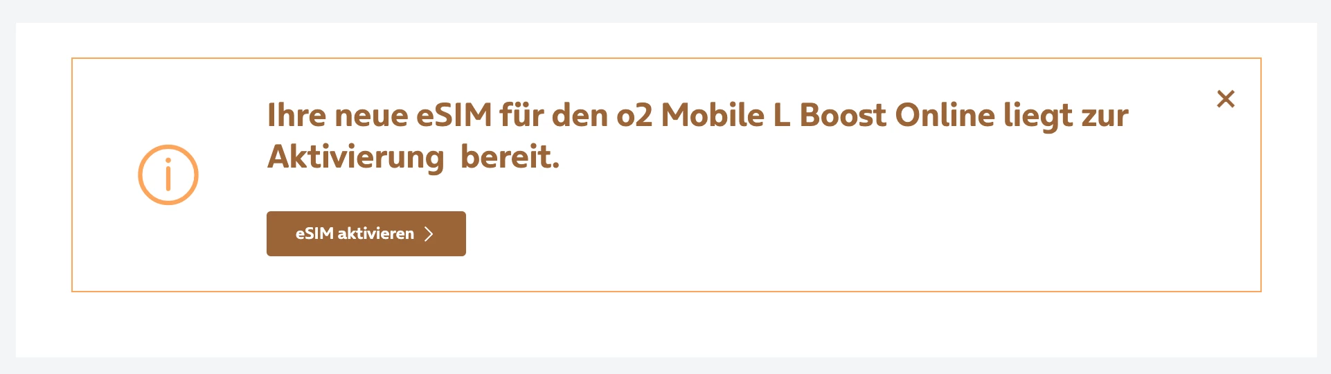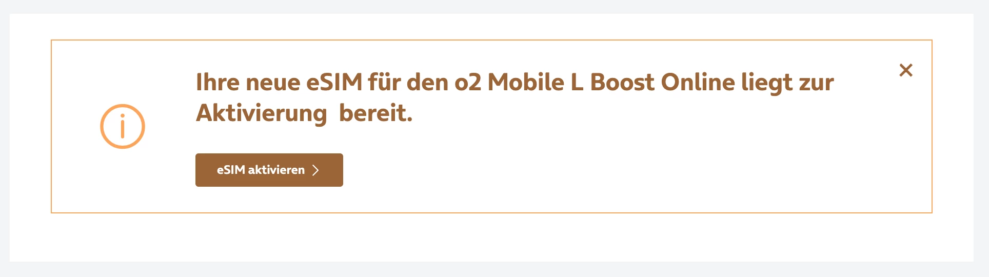 3. Hier bin ich wieder über den Banner zur Aktivierung der eSIM-Karte gegangen und auch das hat diesmal sofort funktioniert. Der Button zur Aktivierung wurde sofort dargestellt und konnte angeklickt werden.