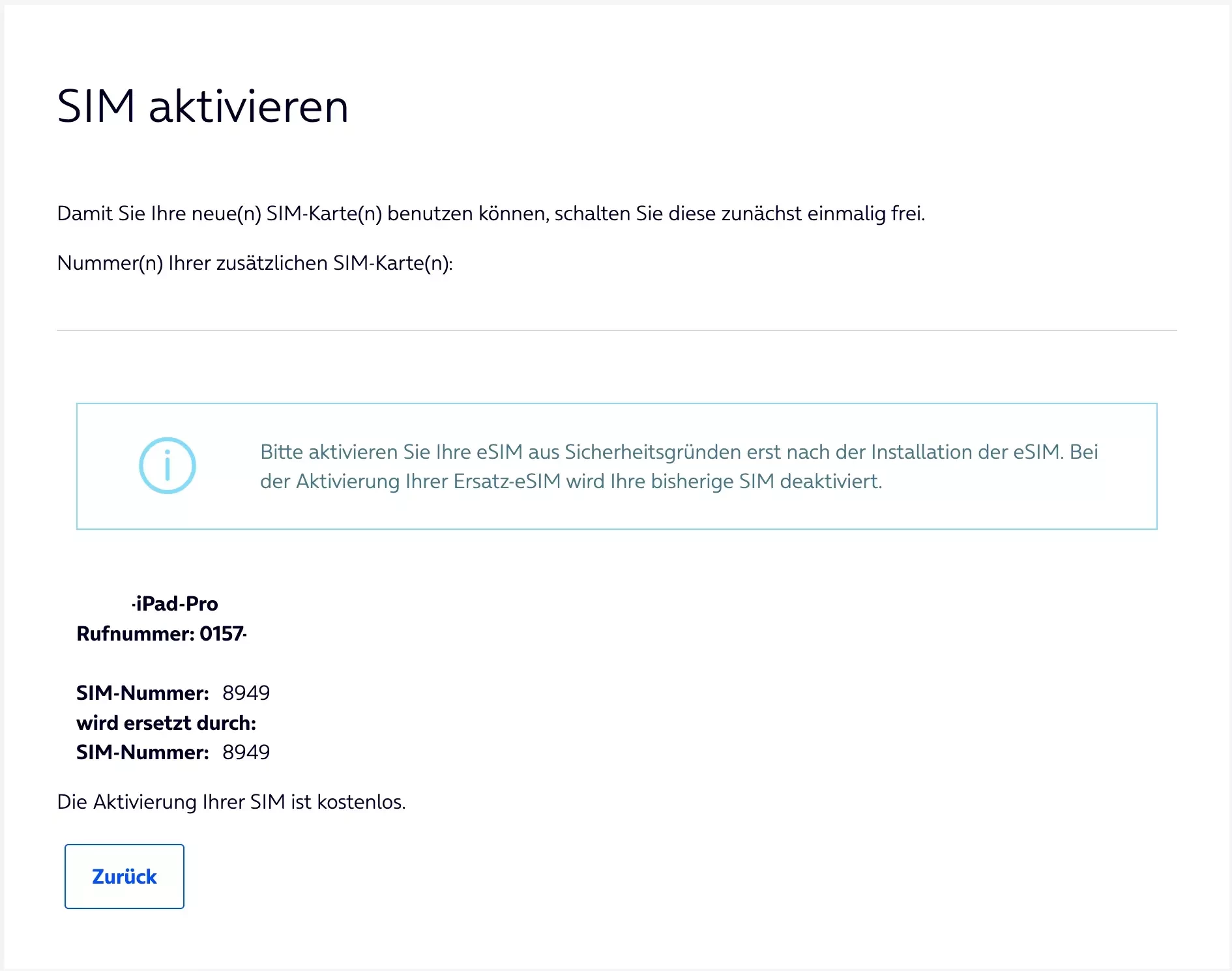 Worauf ich hinaus will, es wäre wichtig, dass du dich immer mit der Rufnummer anmeldest für die du auch den Tausch bzw. die Neuaktivierung einer eSIM veranlassen möchtest.